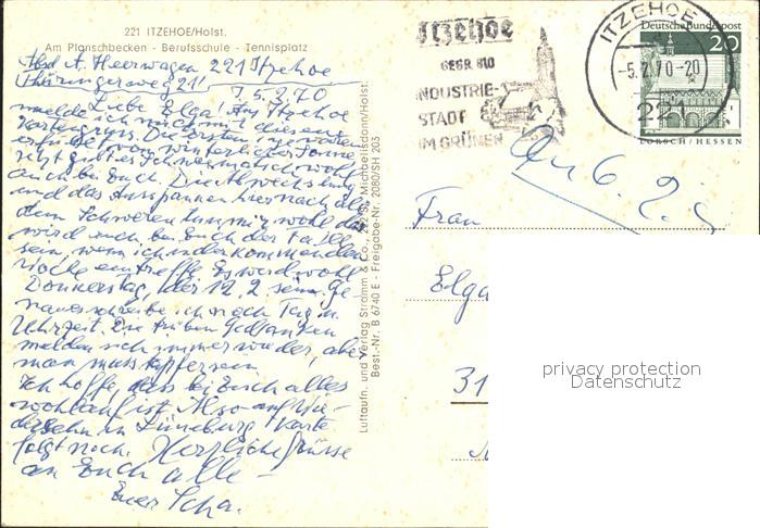 72035733 alte Postkarte Itzehoe Planschbecken Berufsschule Tennisplatz Fliegeraufnahme postalisch gelaufen Erhaltung siehe scans KatCode: 11110001061046