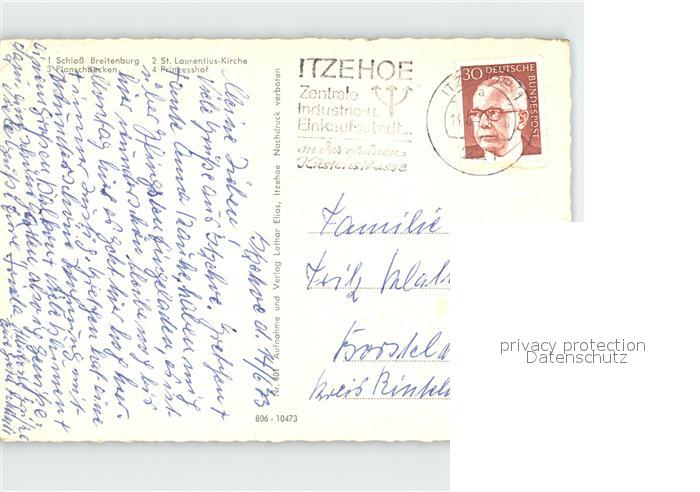 72202791 alte Postkarte Itzehoe Schloss Breitenburg St Laurentius Kirche Planschbecken Prinzesshof postalisch gelaufen Erhaltung siehe scans KatCode: 11110001061046
