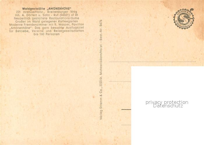 73730675 Itzehoe Waldgaststaette Amoenenhoehle postalisch nicht gelaufen Erhaltung siehe scans [LiesaD40] KatCode: 11110001061046