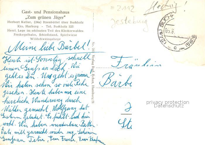 73654126 alte Postkarte Itzenbuettel Gasthof zum gruenen Jaeger Bache mit Frischlingen postalisch gelaufen Erhaltung siehe scans [WerneD78] KatCode: 11110003353020