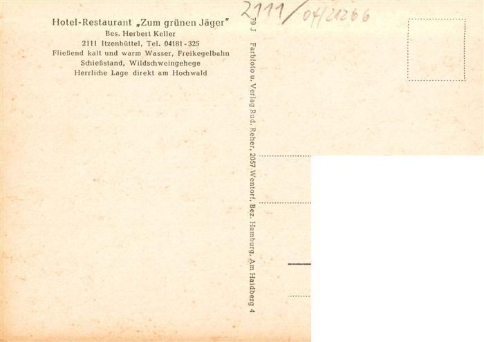 73893160 Itzenbuettel Hotel Restaurant Zum gruenen Jaeger Gastraum Kaffeegarten Wildschweingehege postalisch nicht gelaufen Erhaltung siehe scans [WerneD78] KatCode: 11110003353020