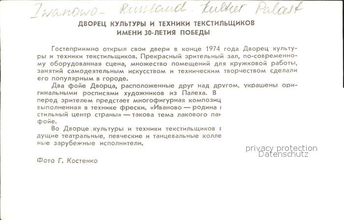 Iwanowo Kultur Palast postalisch nicht gelaufen Erhaltung siehe scans