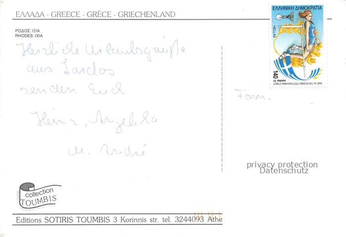 74153798 old postcard Ixia Rhodes RHODOS Greece Kuestenpanorama postalisch gelaufen Fliegeraufnahme Erhaltung siehe scans [FriedD77] KatCode: 11190