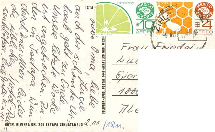 73869634 old postcard Ixtapa Zihuatanejo Mexico Hotel Riviera del Sol postalisch gelaufen Erhaltung siehe scans [FriedD77] KatCode: 14120