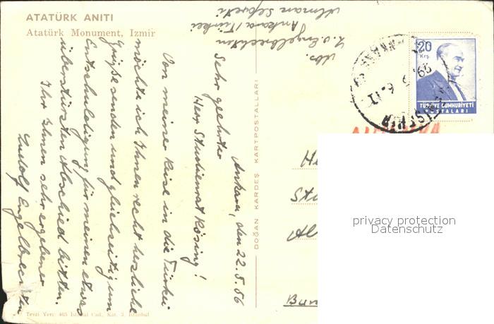 old postcard Izmir Atatuerk Aniti postalisch gelaufen Erhaltung siehe scans