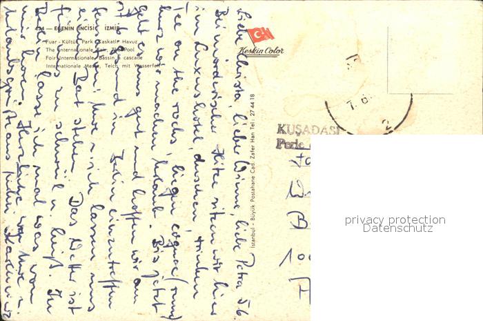 old postcard Izmir Internationale Messe Brunnen postalisch gelaufen Erhaltung siehe scans