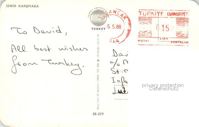 old postcard Izmir Karsiyaka postalisch gelaufen Erhaltung siehe scans [KathaD81]