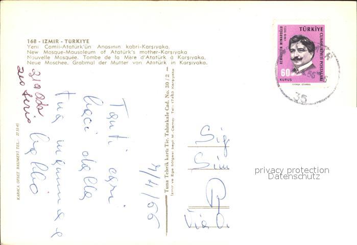 old postcard Izmir Neue Moschee Grabmal postalisch gelaufen Erhaltung siehe scans