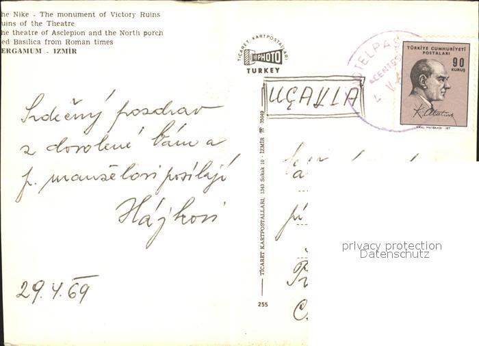 old postcard Izmir Pergamum theatre Asclepion North Basilica Roman times postalisch gelaufen Erhaltung siehe scans