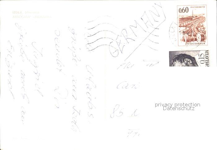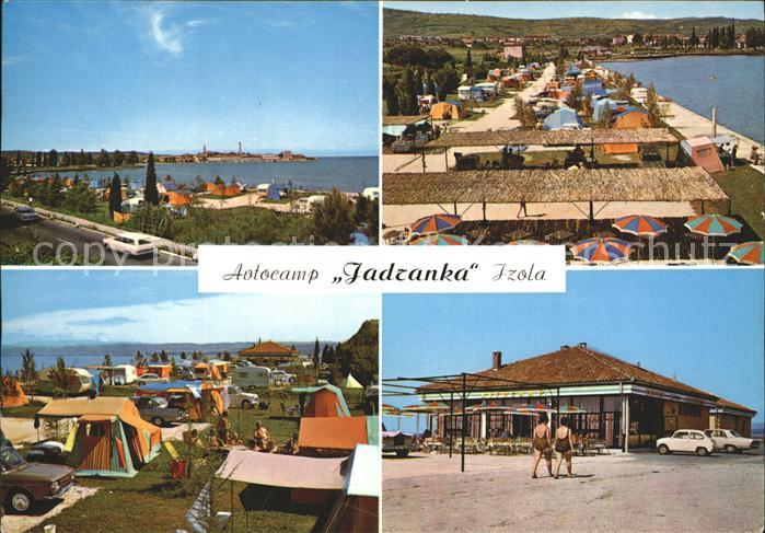old postcard Izola Autocamp Jadranka postalisch gelaufen Erhaltung siehe scans