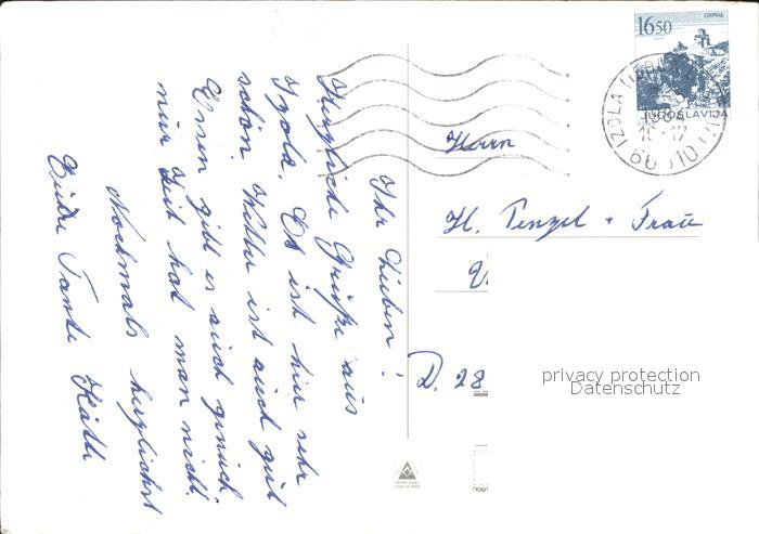 old postcard Izola Hafen Promenade postalisch gelaufen Erhaltung siehe scans