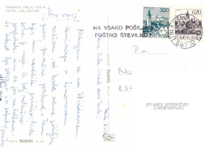 old postcard Izola Hotel Haliaetum postalisch gelaufen Erhaltung siehe scans [LiesaD40]