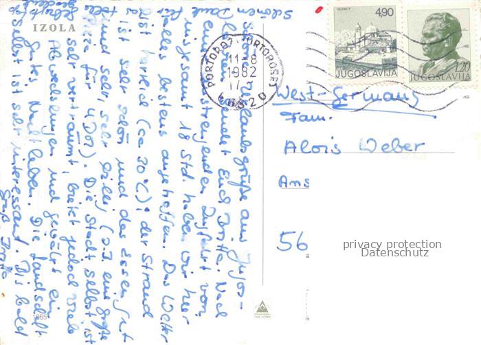 74043801 old postcard Izola Slovenia Panorama Kuestenort Hafen Mole postalisch gelaufen Fliegeraufnahme Erhaltung siehe scans [FriedD77] KatCode: 11500