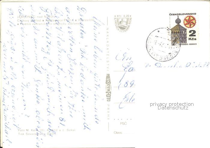 old postcard Jablonec nad Nisou Celkovy pohled Restaurace Petrin Vystaviste Podnik zahranicniho obchodu Jablonex postalisch gelaufen Erhaltung siehe scans