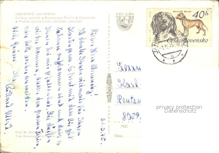 old postcard Jablonec nad Nisou Celkovy pohled Restaurace Petrin postalisch gelaufen Erhaltung siehe scans