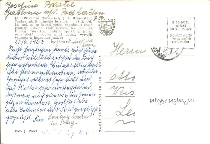 old postcard Jablonec nad Nisou Park postalisch gelaufen Erhaltung siehe scans