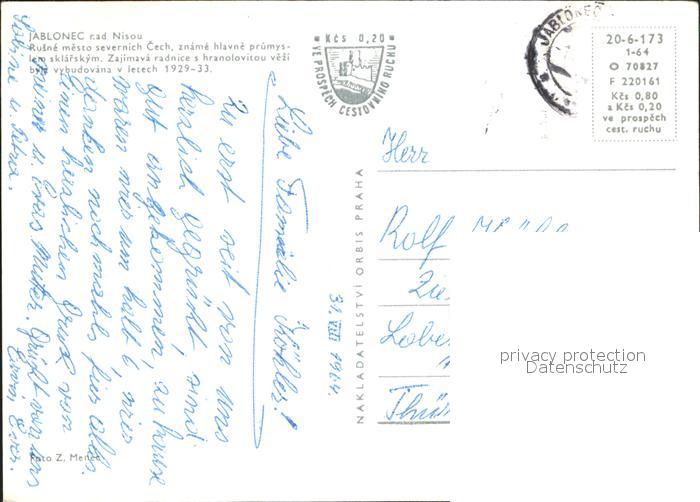 old postcard Jablonec nad Nisou Rusne mesto severnich Cech postalisch gelaufen Erhaltung siehe scans