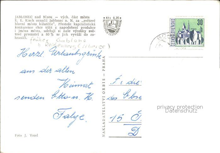 old postcard Jablonec nad Nisou vych. cast mesta Stadtbild mit Kirche postalisch gelaufen Erhaltung siehe scans