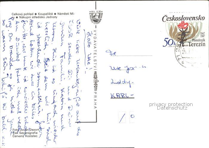 old postcard Jablonne Podjestedi Gabel Gesamtansicht Freibad Strassenpartie postalisch gelaufen Erhaltung siehe scans