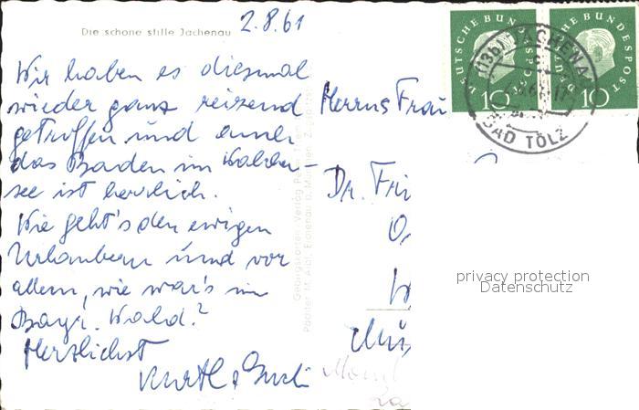 71848280 alte Postkarte Jachenau postalisch gelaufen Erhaltung siehe scans KatCode: 11110009173131