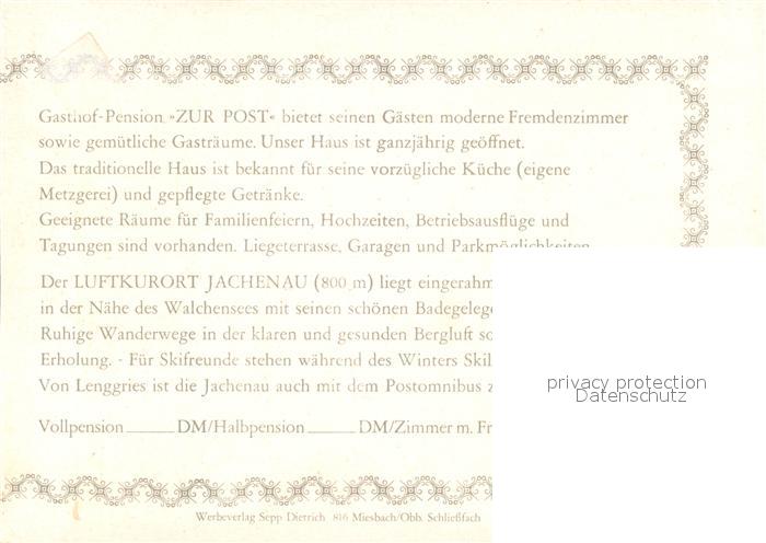 73236792 Jachenau Gasthof Pension Zur Post postalisch nicht gelaufen Werbekarte (keine Postkarte) Erhaltung siehe scans [KathaD81] KatCode: 11110009173131
