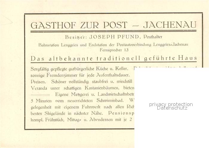 73645008 Jachenau Gasthof Pension Zur Post postalisch nicht gelaufen Werbekarte (keine Postkarte) Erhaltung siehe scans [WerneD78] KatCode: 11110009173131
