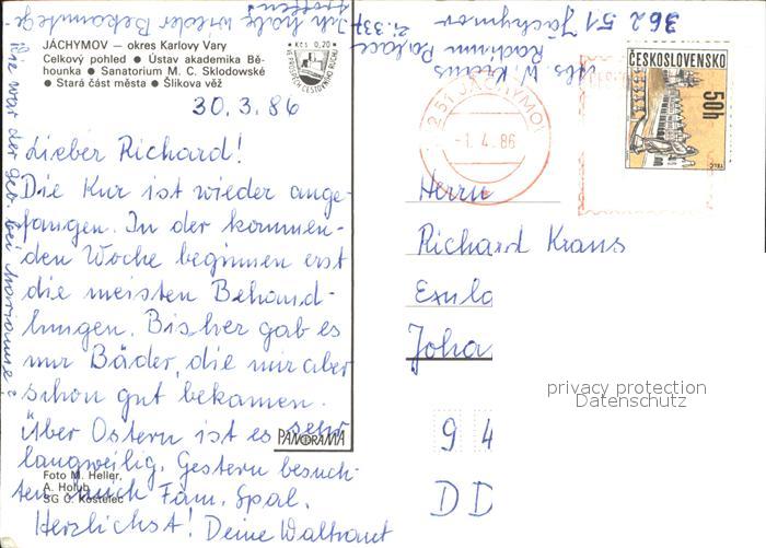old postcard Jachymov postalisch gelaufen Erhaltung siehe scans [LiesaD40]