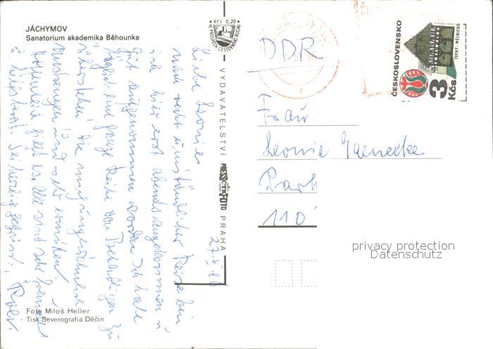 old postcard Jachymov Sanatorium akademika Behounka postalisch gelaufen Erhaltung siehe scans