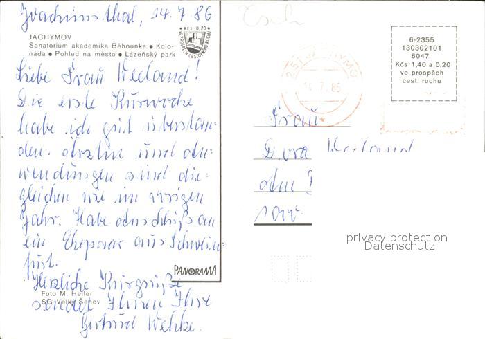 old postcard Jachymov Sanatorium Kolonada Lazensky park postalisch gelaufen Erhaltung siehe scans
