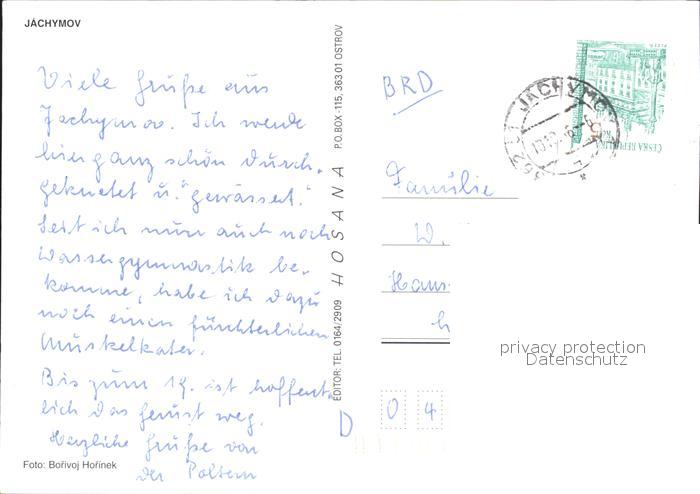 old postcard Jachymov Stadtblick postalisch gelaufen Erhaltung siehe scans