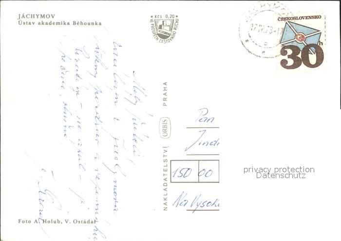 old postcard Jachymov Ustav Akademika Behounka postalisch gelaufen Erhaltung siehe scans
