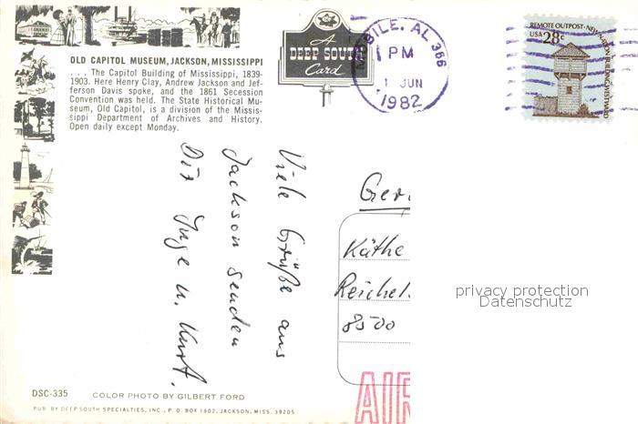 72840008 old postcard Jackson Mississippi Old Capital Museum postalisch gelaufen Erhaltung siehe scans [LiesaD40] KatCode: 14140260000000