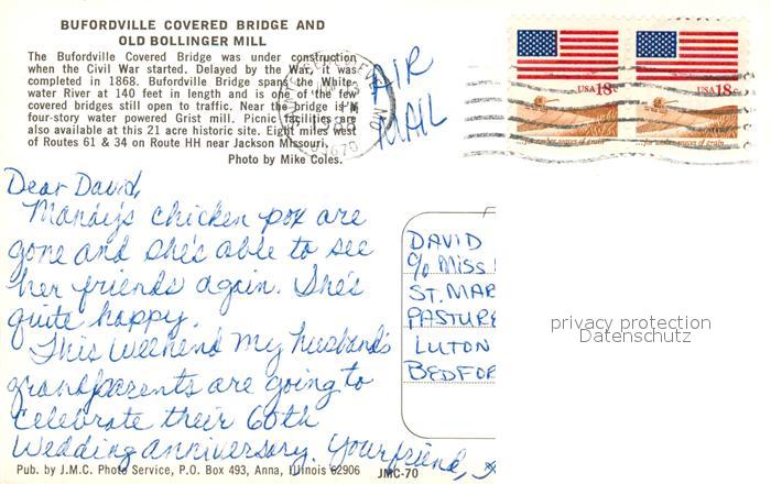 73132118 old postcard Jackson Missouri Bufordville Covered Bridge Old Bollinger Mill postalisch gelaufen Erhaltung siehe scans [KathaD81] KatCode: 14140270000000