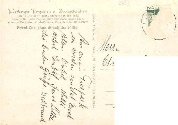 73930727 alte Postkarte Jaderberg Jade Jaderberger Tiergarten Elefanten Kamele Seehunde Pinguine postalisch gelaufen Erhaltung siehe scans [WerneD78] KatCode: 11110003461005