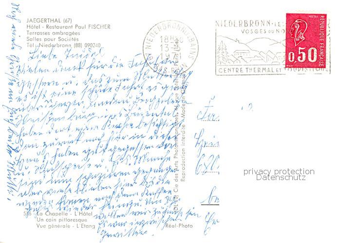 13870876 Jaegerthal 67 Bas-Rhin Hotel Restaurant Paul Fischer postalisch gelaufen Erhaltung siehe scans [WerneD78] carte postale Wern Katcode 11170067267324