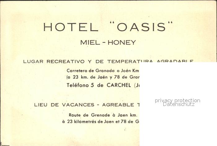 Jaen Hotel Oasis postalisch nicht gelaufen Werbekarte (keine Postkarte) Erhaltung siehe scans