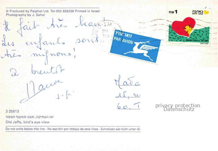 74010867 old postcard Jaffa Tel-Aviv Israel Old Jaffa Fliegeraufnahme postalisch gelaufen Erhaltung siehe scans [WerneD78] KatCode: 13080