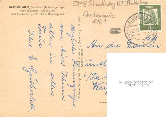 73700927 alte Postkarte Jagdhaus Schmallenberg Gasthof Wiese Gastraum Kaminzimmer postalisch gelaufen Erhaltung siehe scans [FriedD77] KatCode: 11110005958040
