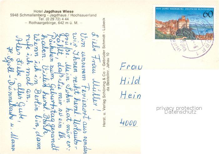 73721351 alte Postkarte Jagdhaus Schmallenberg Hotel Jagdhaus Wiese postalisch gelaufen Erhaltung siehe scans [FriedD77] KatCode: 11110005958040