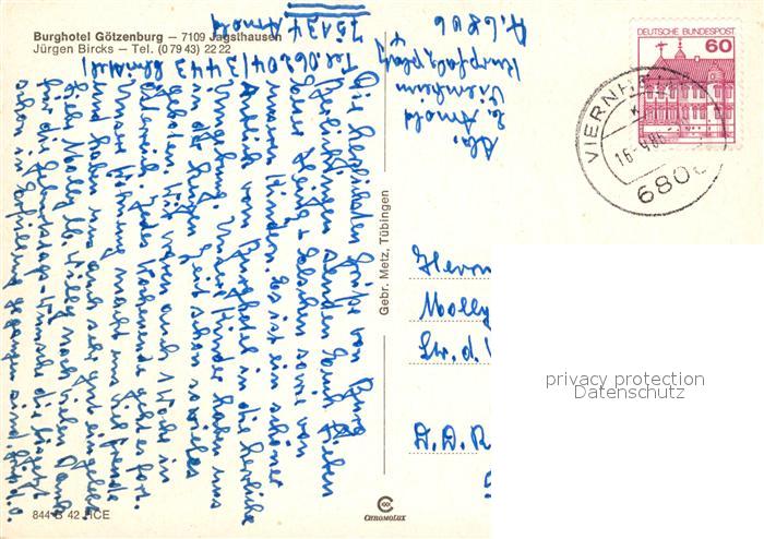 73055788 alte Postkarte Jagsthausen Heilbronn Burghotel Goetzenburg postalisch gelaufen Erhaltung siehe scans [NatalD47] KatCode: 11110008125048