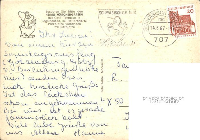 72557317 alte Postkarte Jagsthausen Heilbronn Heimo Maerchengarten postalisch gelaufen Erhaltung siehe scans [KathaD79] KatCode: 11110008125048