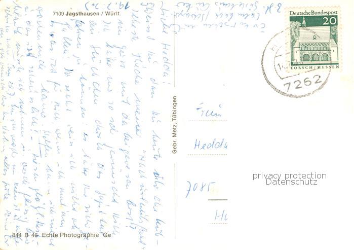 73867490 alte Postkarte Jagsthausen Jagst Kirche Ortspartie postalisch gelaufen Erhaltung siehe scans [WerneD78] KatCode: 11110008126072