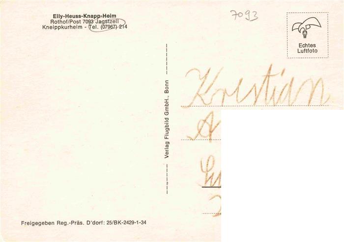 74015260 Jagstzell Elly Heuss Knapp Heim Fliegeraufnahme postalisch nicht gelaufen Erhaltung siehe scans [WerneD78] KatCode: 11110008136082