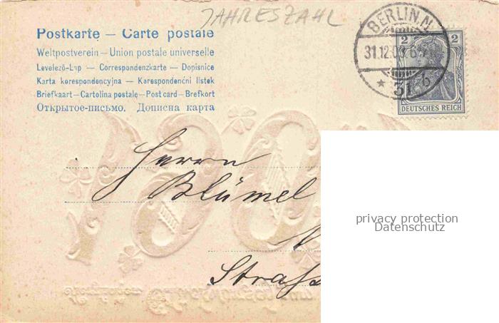 74034501 alte Postkarte Jahreszahl-AK Year Annee Ano 1904 Neujahr Nouvelle annee postalisch gelaufen Erhaltung siehe scans [SanaeD93] KatCode: 22100000002600