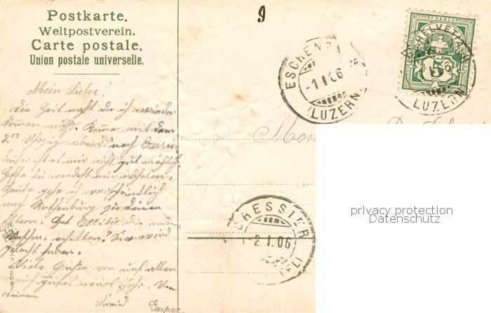 Jahreszahl Year Annee Ano 1906 Neujahr Litho