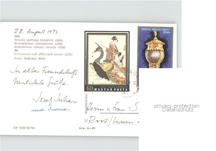 old postcard Jak Benediktiner Abteikiche postalisch gelaufen Erhaltung siehe scans