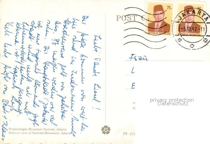 old postcard Jakarta Aerial view of National Monument postalisch gelaufen Erhaltung siehe scans [WerneD78]