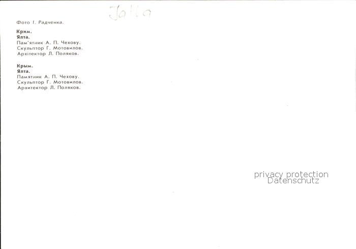 Jalta Yalta Krim Crimea Denkmal Tschechov postalisch nicht gelaufen Erhaltung siehe scans