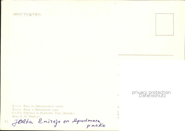 Jalta Yalta Krim Crimea Entrance to Primorsky Park Seaside postalisch nicht gelaufen Erhaltung siehe scans