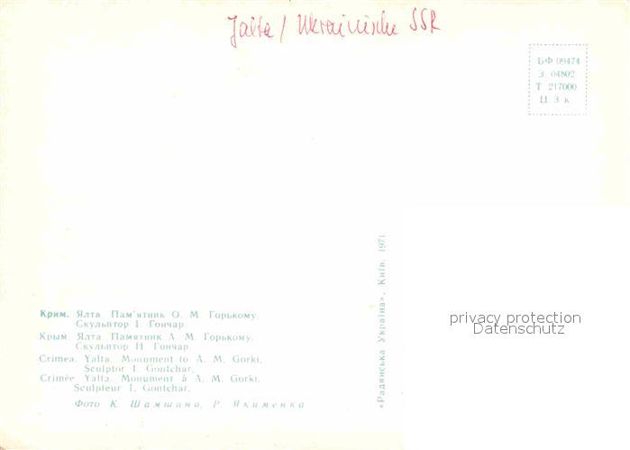 Jalta Yalta Krim Crimea Gorki Denkmal postalisch nicht gelaufen Erhaltung siehe scans [NatalD47]